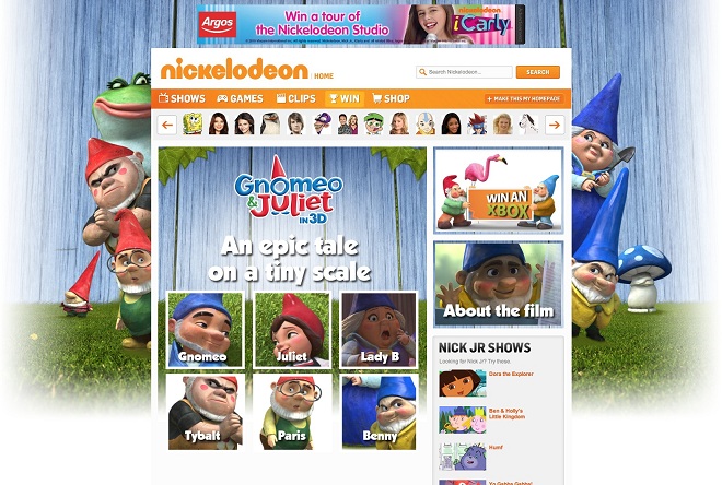 Stratford Web Design were commissioned to design the Gnomeo and Juliet webpages for the Nickelodeon website.